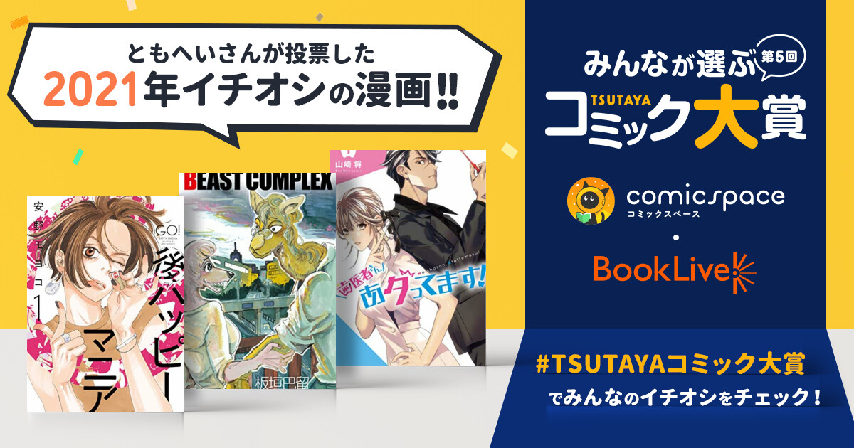 TSUTAYA×comicspace×ブックライブ「第5回 みんなが選ぶTSUTAYAコミック大賞」は次にヒットするであろうネクストブレイク作品を読者投票によって決めるマンガ賞です。