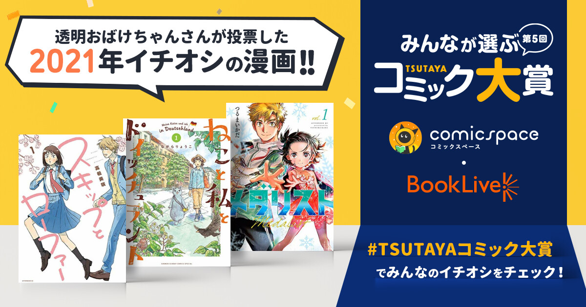 TSUTAYA×comicspace×ブックライブ「第5回 みんなが選ぶTSUTAYAコミック大賞」は次にヒットするであろうネクストブレイク作品を読者投票によって決めるマンガ賞です。