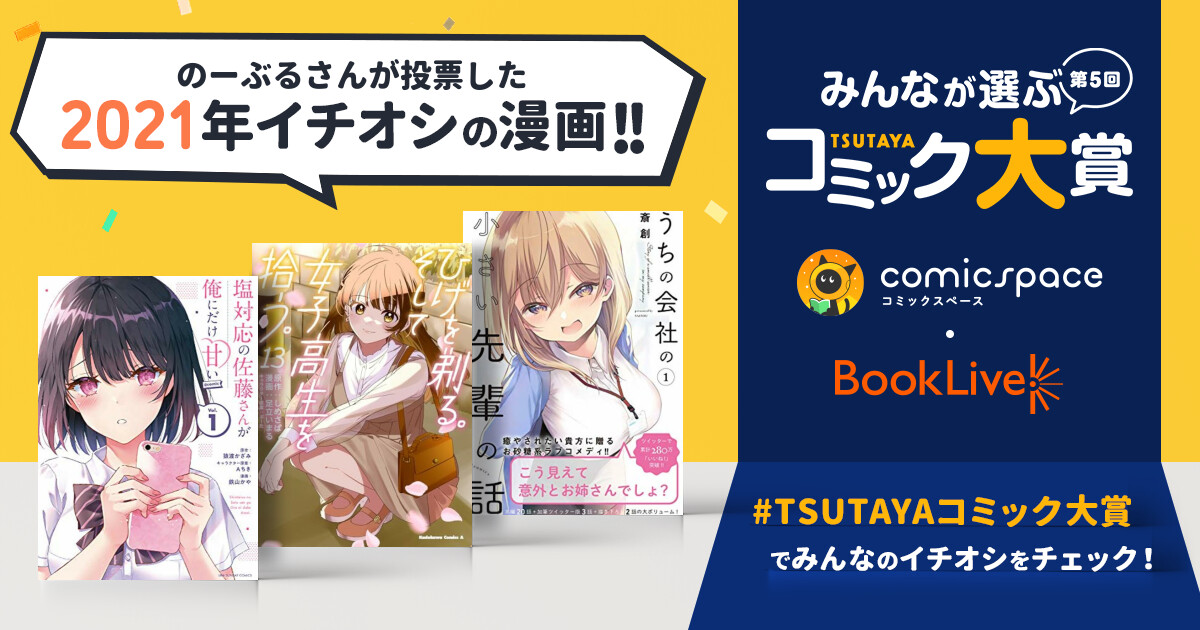 TSUTAYA×comicspace×ブックライブ「第5回 みんなが選ぶTSUTAYAコミック大賞」は次にヒットするであろうネクストブレイク作品を読者投票によって決めるマンガ賞です。